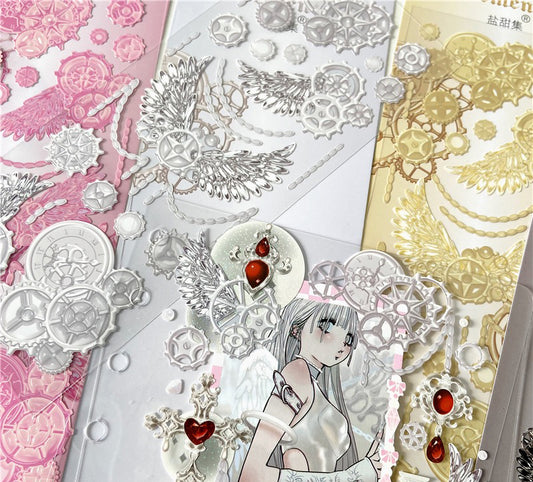 "Celestial Angel's Essence" Original Gear and Chain Versatile Base Sticker for Glamorous Wing Decoration of Goo Cards, Planner, and Photos
